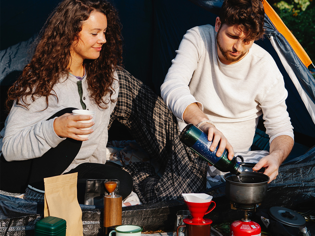 Enameled, insulated or compressible, the coffee mug comes in various shapes and is a must to your outdoor getaway.
